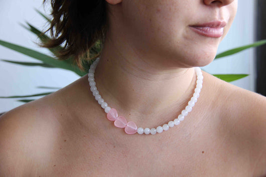 Rose Quartz Three Heart Necklace